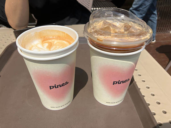 '파인즈' 로고가 있는 테라스 끝은 포토존입니다.