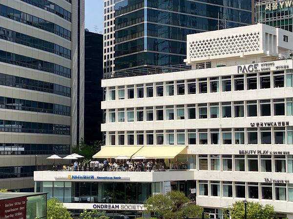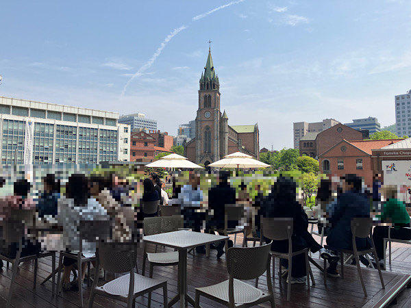 복합문화공간 '페이지 명동' 건물의 3층에 자리잡은 테라스 카페입니다.