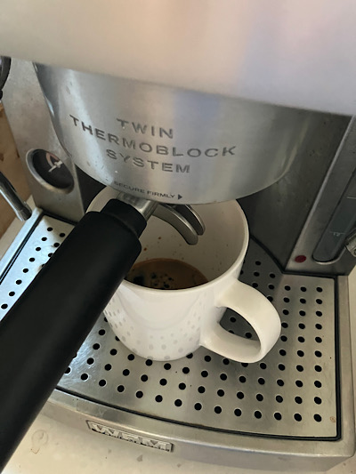 에어프라이어 조리 시간 동안 에스프레소머신에서 커피도 내렸어요.