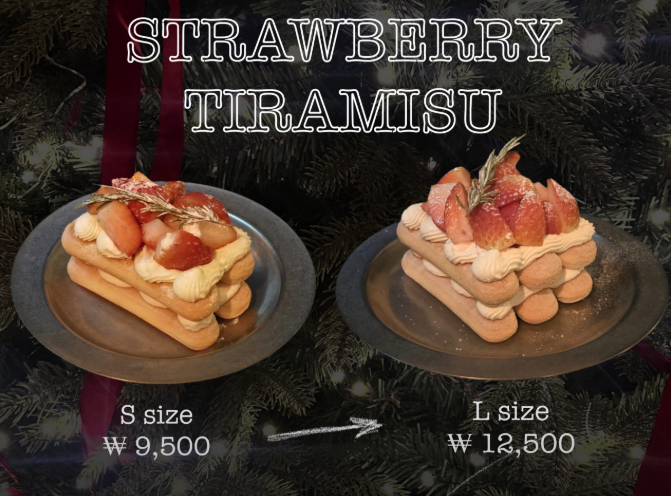 딸기 티라미수, 갸토쇼콜라, 쑥갸또, 흑임자푸딩 등 달콤한 디저트도 판매합니다.